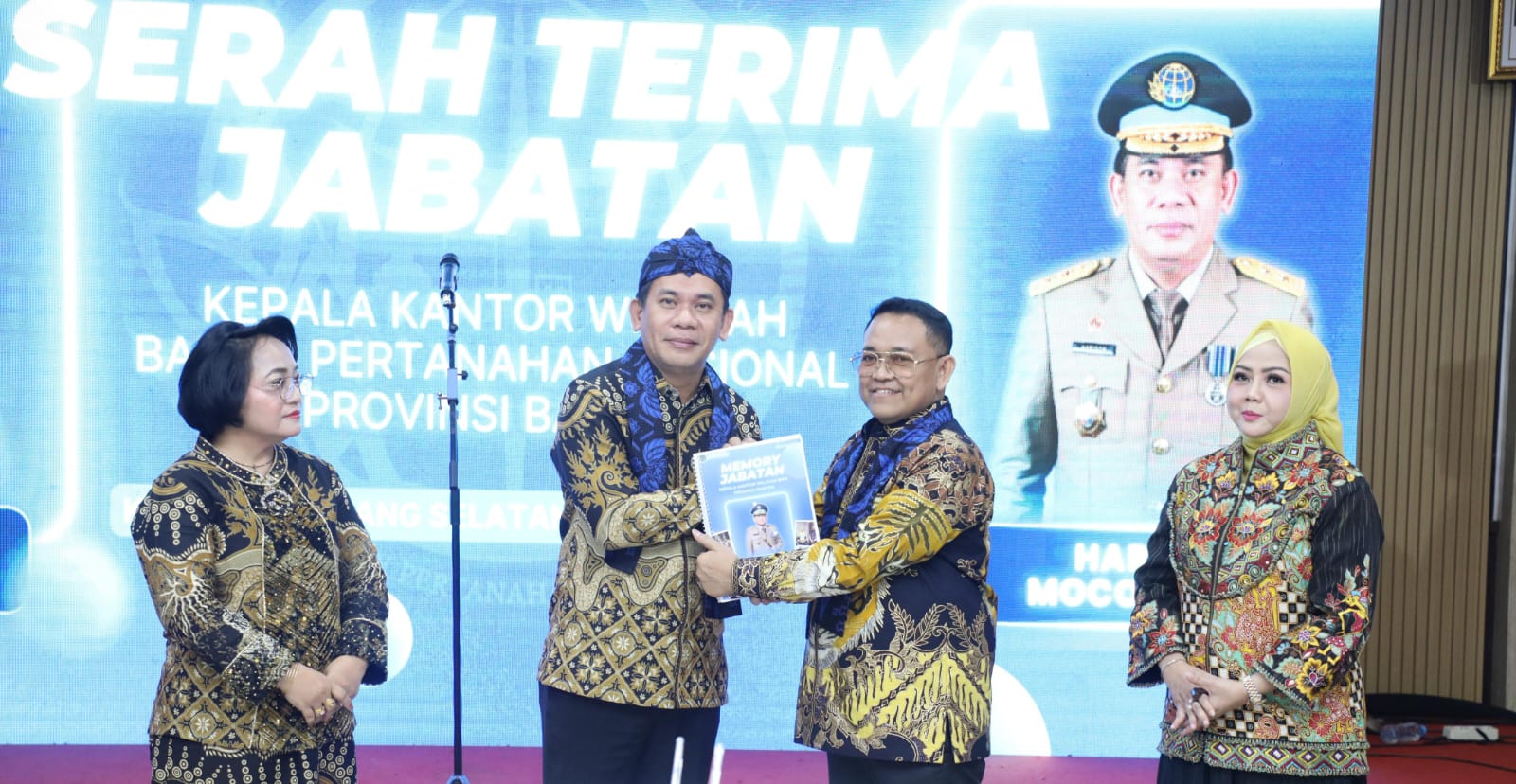 Acara yang berlangsung di aula Kantor Pertanahan (Kantah) Kota Tangerang Selatan ini, menandai serah terima jabatan dari Sudaryanto kepada Harison Mocodompis, yang resmi dilantik sebagai Kepala Kanwil BPN Banten pada 4 November lalu.