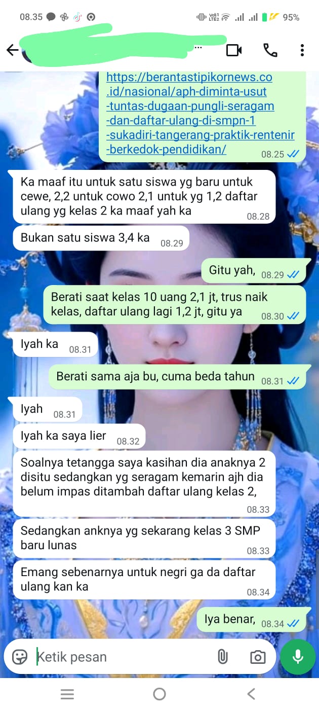 Praktik pembelian seragam dan biaya daftar ulang ditingkat SMP N 1 Sukadiri dengan harga tinggi merupakan praktik pungutan liar (pungli) terselubung.