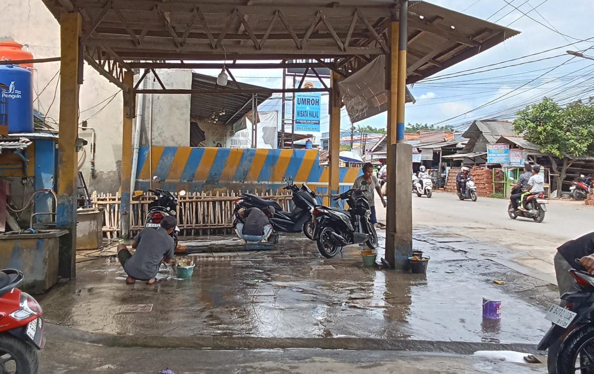 Kini para cucian motor ini yang ada di KP. Pisangan, Sepatan ini para pemotor akan di perkirakan antri sampai jam 18.00 wib.