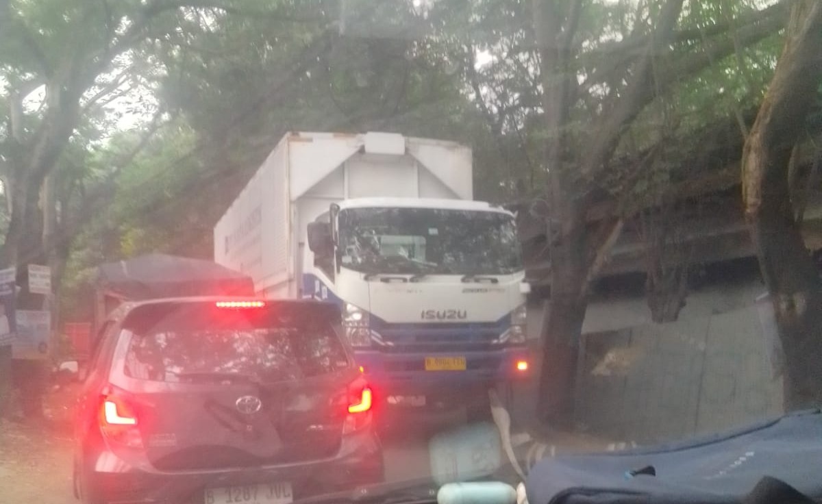Sampai kabupaten Tangerang di duga tidak layak lintasan untuk kenderaan yang begitu panjang nya dan juga muatan yang begitu berat.