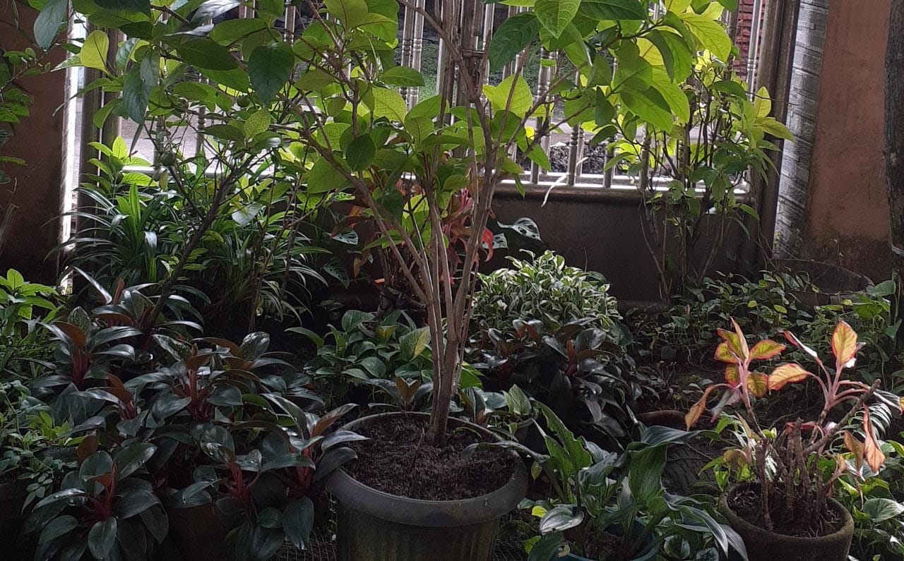 Di pakuhaji rumah ibu ida (48), Tanamannya di depan pekarangannya subur dan hijau daunnya.